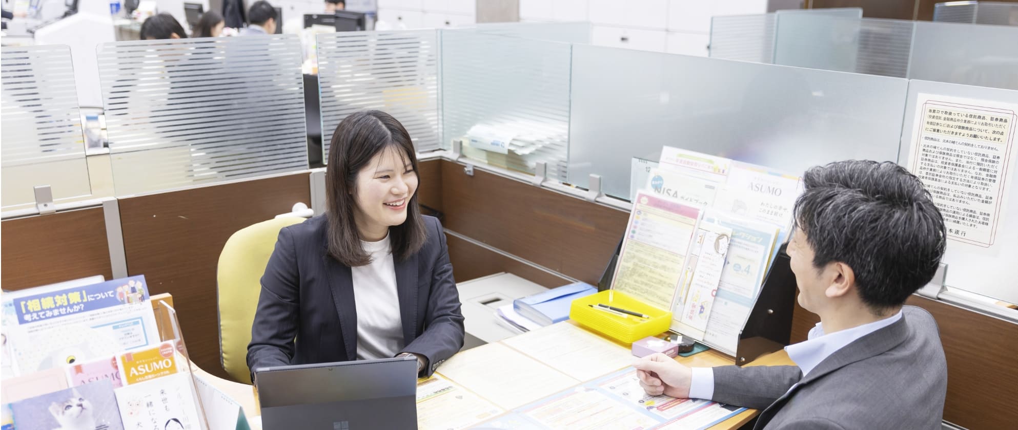 入行後、最初に配属された営業店では窓口業務を担当しました。前職では渉外担当の期間が長かったため、窓口でお客さまと向き合う仕事は久しぶりでしたが、基礎から見つめなおす貴重な機会となりました。配属された店舗は来店者数が非常に多く、老若男女さまざまなお客さまと接する機会に恵まれていました。お客さまのニーズも多種多様で、同じ「資産運用のご相談」であっても背景が一人ひとり異なり、その方に合わせたオーダーメイドの対応力が自然と磨かれたと感じています。「お金」に関することは、たとえ家族であっても気軽に話しにくいデリケートなテーマであり、お客さまの人生に深く関わる大切な領域です。その重要な相談ごとに寄り添える銀行の仕事に、あらためて大きなやりがいを感じました。最初は、方言や文化の違いに戸惑うこともありましたが、岩手の方ならではの温かさに触れる中で、着実に信頼関係を築くことができました。こうした営業店での経験を経て、本部のライフサポート部へ異動し、現在に至ります。